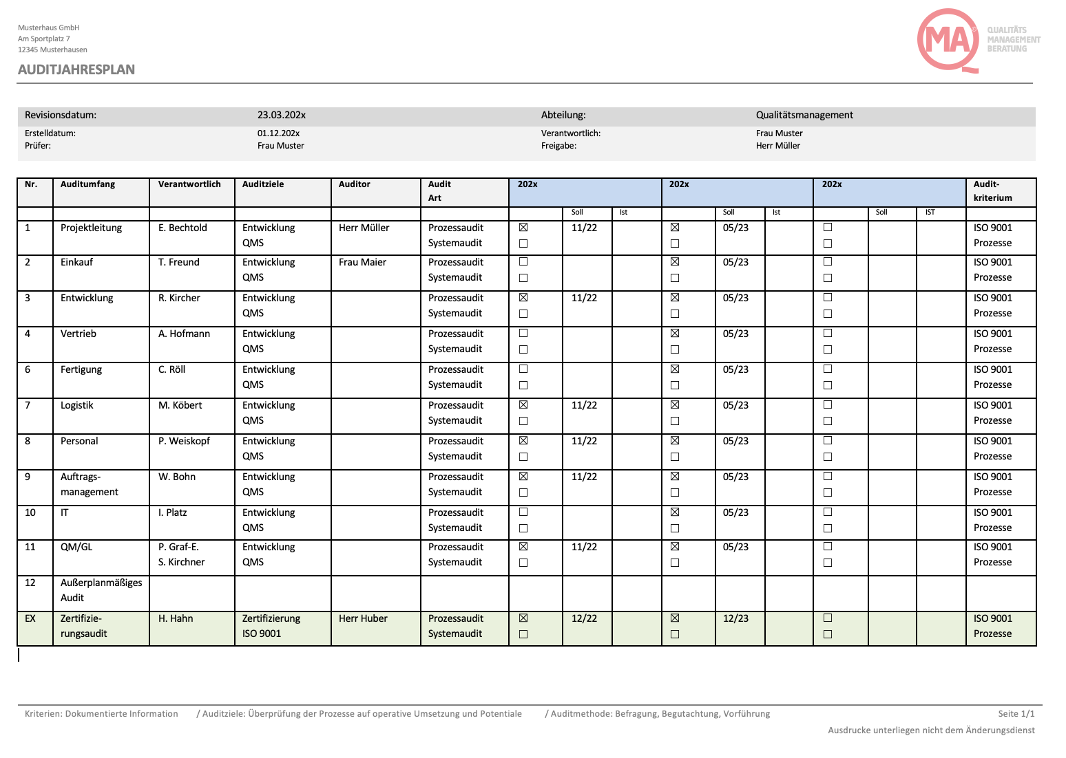 Planung und Vorbereitung des internen Audits nach ISO 9001